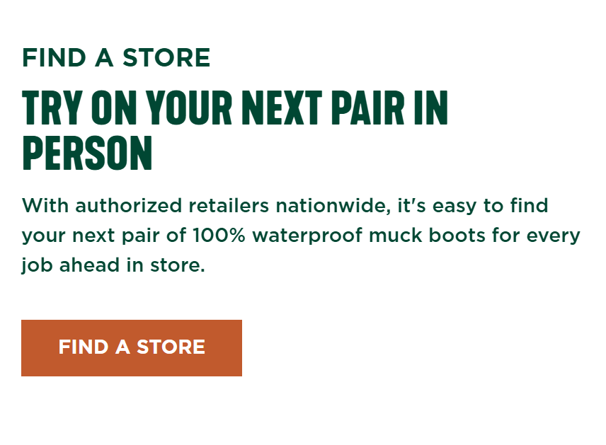 With authorized retailers nationwide, it's easy to find your next pair of 100% waterproof muck boots for every job ahead in store.
