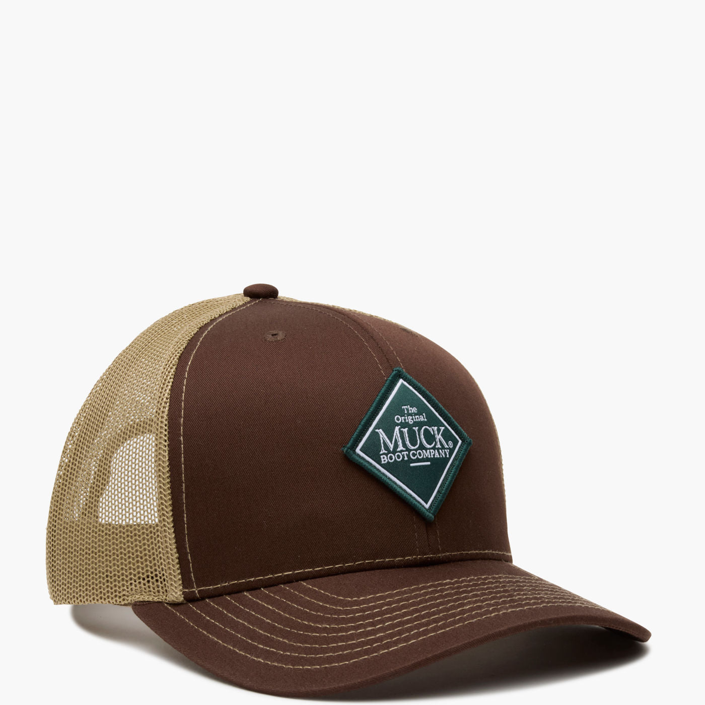 Classic six-panel trucker hat with an adjustable snapback closure featuring an embossed rubber Muck Boot Company logo..
